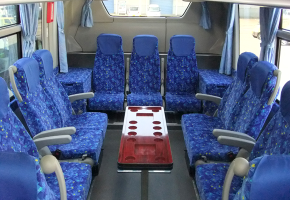 乗車定員は多くないですが、その分座席間のスペースが広く、ゆったりご乗車いただけます。 また、装備も充実しておりますので、快適な旅行を楽しむ事ができるでしょう。