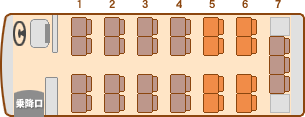 主にバスの後部座席を回転させて座席をコの字にできます。